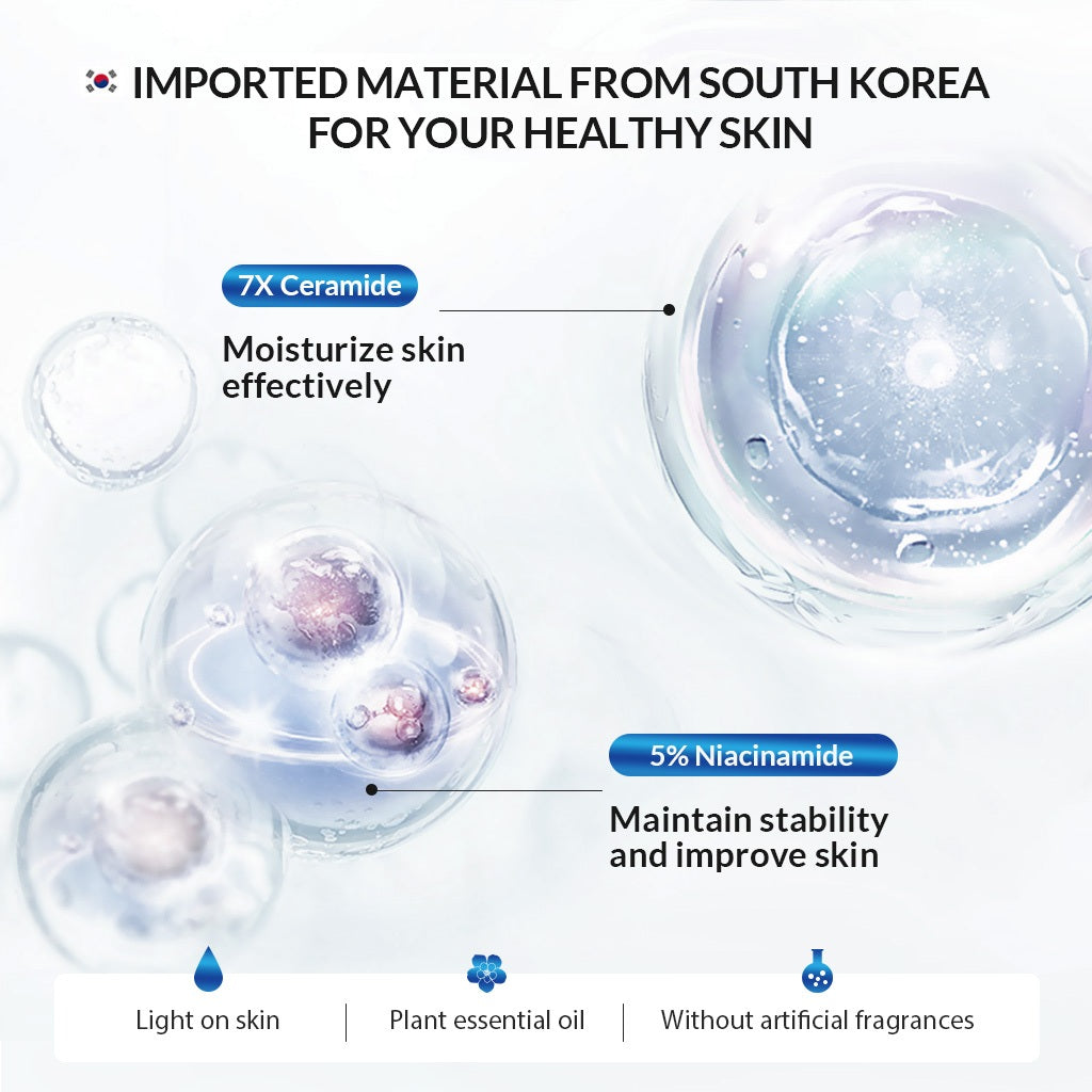 The enhanced moisture provided by our 7x Ceramide promotes skin wellness, resulting in a luminous, glass-like glow.