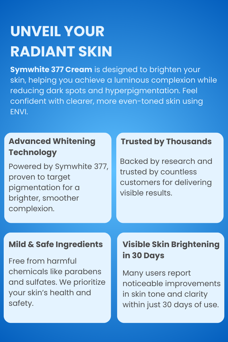 ✅Whitening: The cream contains SymWhite 377 which promotes a brighter complexion by inhibiting melanin production.